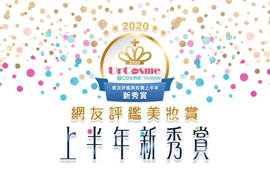 2020 UrCosme (@cosme TAIWAN) 網友評鑑美妝賞上半年新秀賞於2020年6月11日發佈!今年上半年共計有1055件新品(已排除停產、海外商品),在每個屬性僅有一位獲賞品的激烈競爭下,共有21件獲得消費者的青睞!其中,更有6件同時入選日本「@cosme THE BEST COSMETICS AWARDS 2020上半年美妝新品」。今年對於全球來說,都是很特別的一年,在新冠肺炎疫情持續延燒的情況下,美妝產業與新品推出的影響又是甚麼?一起來揭曉!