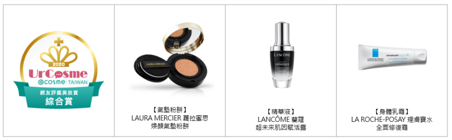 2020 UrCosme (@cosme TAIWAN)網友評鑑美妝-綜合賞 得獎名單