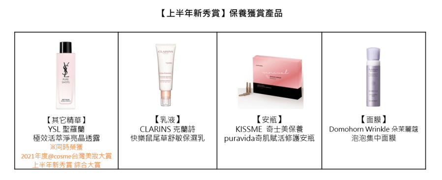 2021年度@cosme台灣美妝大賞 上半年新秀賞 獲賞名單