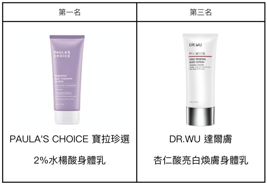 | 身體乳液 | PAULA’S CHOICE 寶拉珍選 | 2%水楊酸身體乳 | 5.8 | 1 |