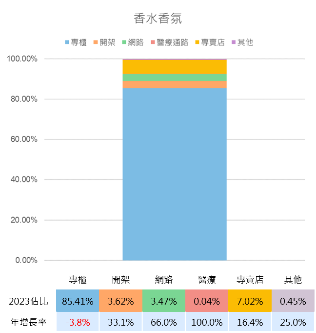 2.各大分類屬性概況與通路分析—臉部保養、臉部彩妝、身體保養、美髮、香水香氛