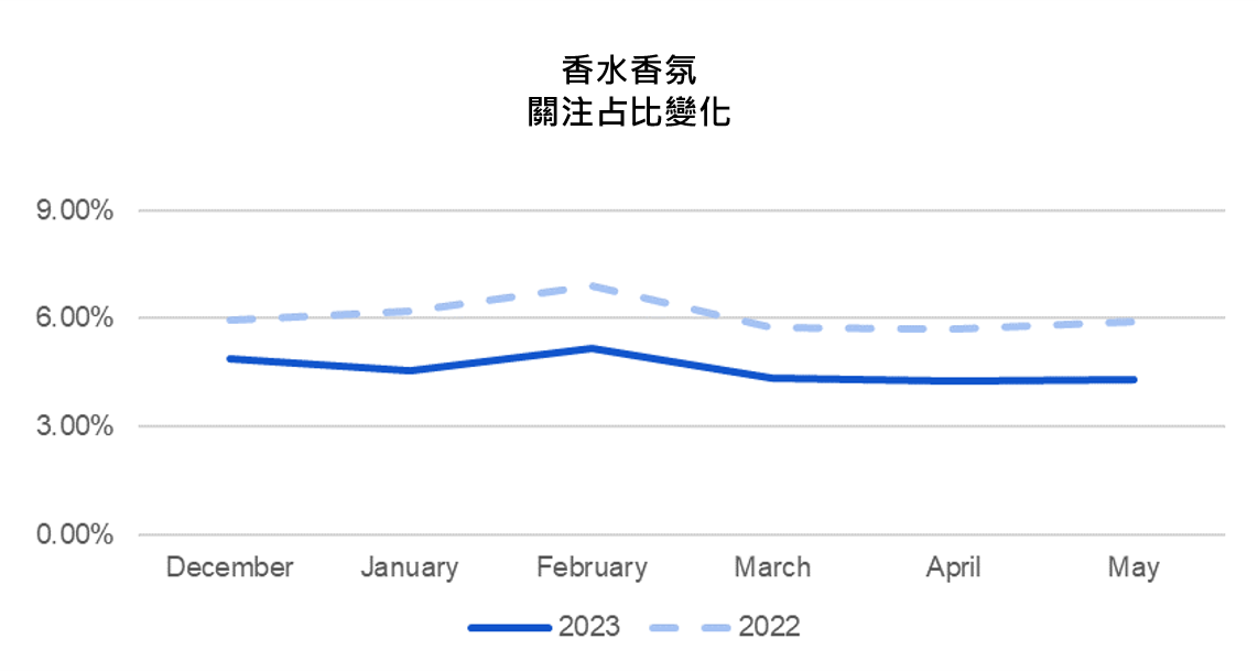 圖(23) 香水香氛關注占比月份變化