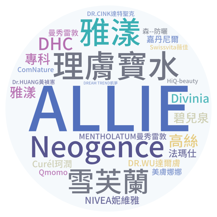 排序第二同樣獲得消費者關注的「海洋友善」產品中,會購買此類產品的消費者表示,無論是否有去海邊玩,在購買產品前都會注意產品是否訴求海洋友善,此類的消費者占比43.8%。其次也有41%去海邊玩的頻率增加,希望使用防曬產品時也能同時愛護海洋。在「海洋友善」此類永續議題主張中,獲得消費者支持,提到「海洋友善」就想到的品牌依序為ALLIE、LA ROCHE-POSAY理膚寶水、Neogence霓淨思、Cellina雪芙蘭。其主要都是以海洋友善防曬品為主打訴求,在消費者心中占有一席之地。