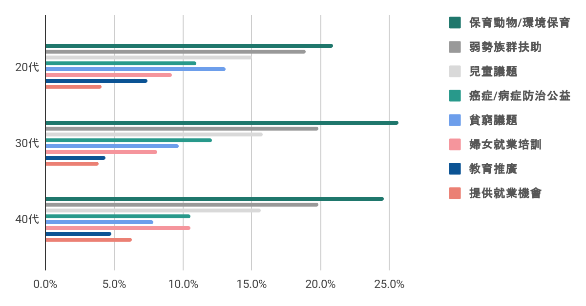 【圖七】消費者關注的美妝「公益活動」議題(以年齡分群)