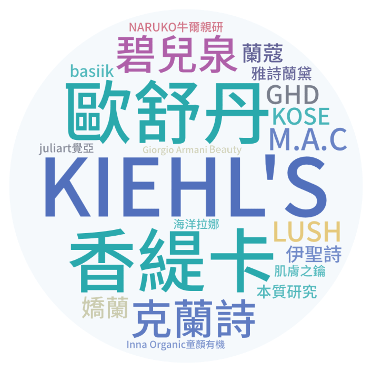 在公益行動中,美妝品牌與相關單位合作時所採取的行動中,消費者關注的活動以綑綁促銷方案的「限定促銷活動」最獲消費者關注,占44.3%。接下來則有接近三成的消費者表示,他們不一定僅限於公益特賣促銷活動,而是會特別關注「平時就會推廣公益議題的品牌」。如果有「公益合作限定的贈品」或「買多少捐多少」的活動,也是消費者關注的行動方式。在各採取「公益活動」的美妝品牌中,消費者第一想起的品牌TOP1是KIEHL’S 契爾氏(38%)。接著是L’OCCITANE歐舒丹、Chantecaille香緹卡。