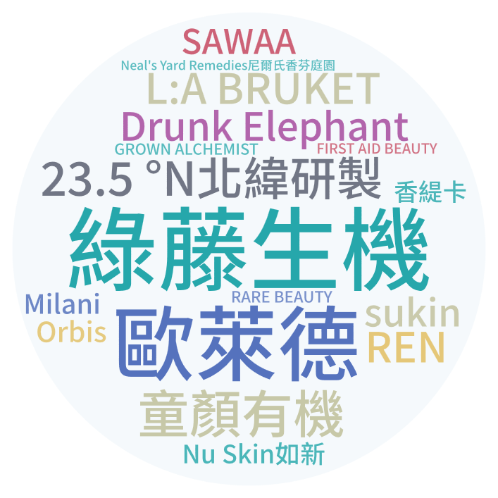 「天然有機」的第一想起品牌,名列前茅的分別為Greenvines綠藤生機、L’OCCITANE歐舒丹、CLARINS克蘭詩、ORIGINS品木宣言。而在「純淨(Clean beauty)」主張的美妝保養品牌中,第一想起品牌為Greenvines綠藤生機,另外有接近三成的消費者表示自己不清楚或沒聽過「純淨(Clean beauty)」的美妝保養品牌,顯示此類訴求還是較鮮為人知,接著則是23.5 °N北緯研製、O’right歐萊德分別排在TOP2、TOP3。