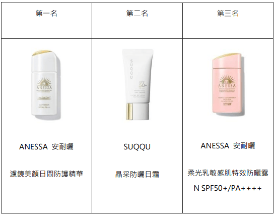 2023年度@cosme台灣美妝大賞 年度大賞 最佳【臉部防曬】獲賞產品
