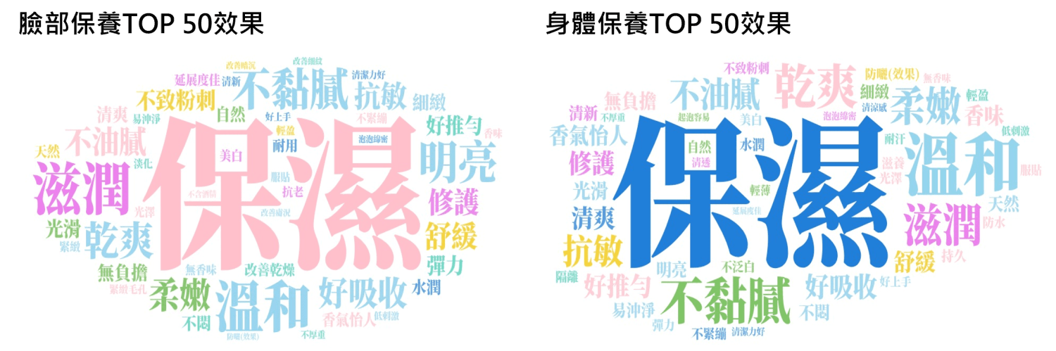 圖(2) 臉部保養、身體保養消費者關注TOP 50效果字