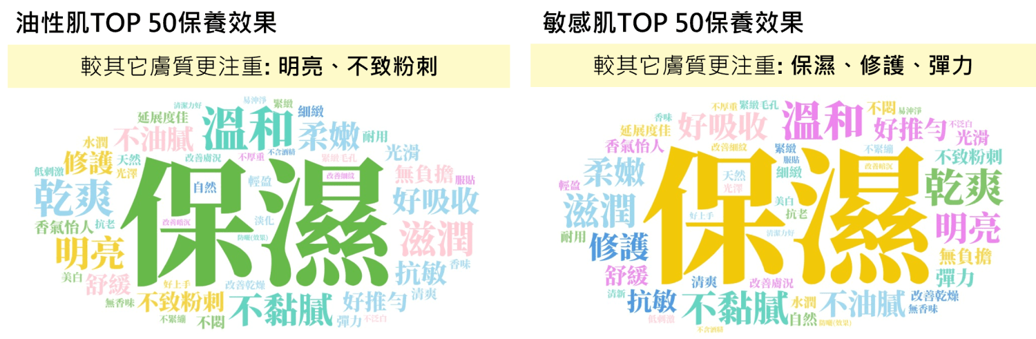 圖(4) 油性肌、敏感肌消費者保養效果關鍵字