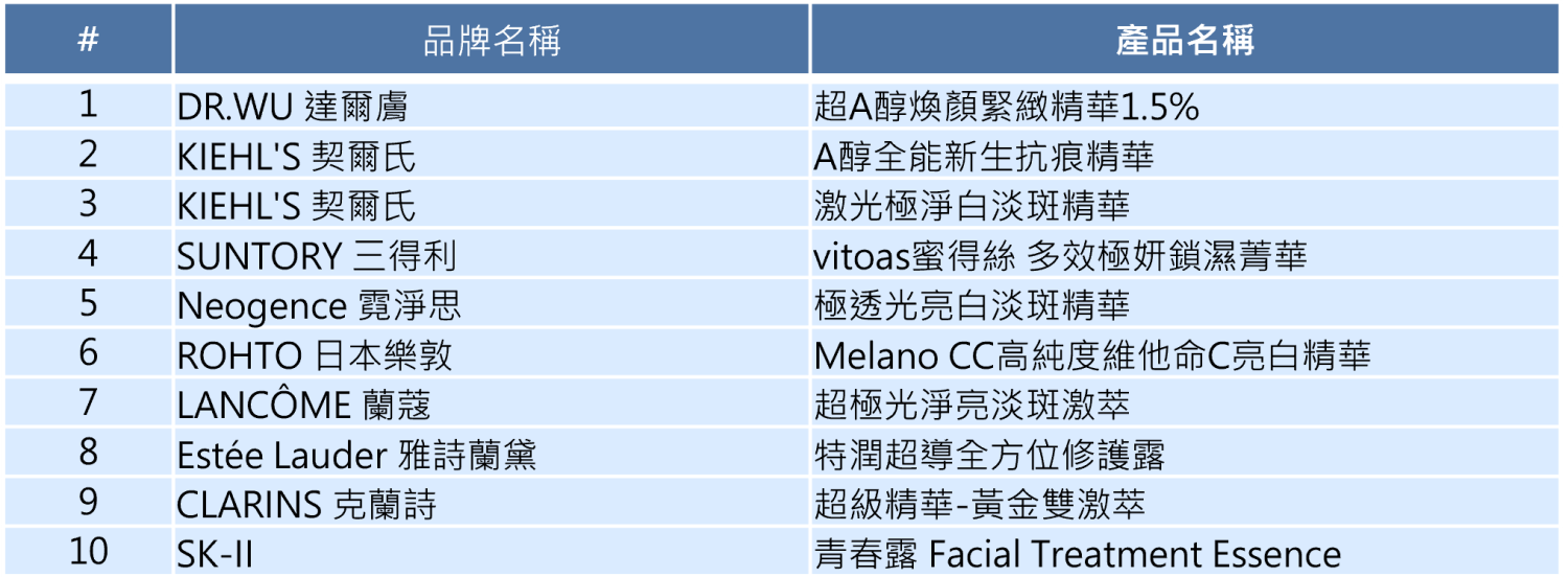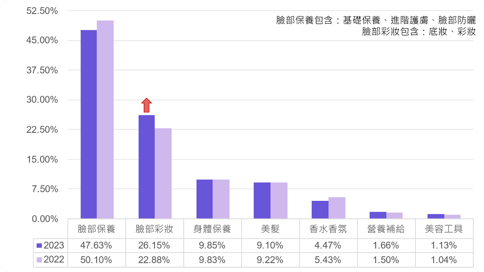 接下來我們以前五大分類屬性:臉部保養、臉部彩妝、身體保養、美髮、香水香氛做深入解析,與各位分享各大分類屬性的消費者關注變化與原因。