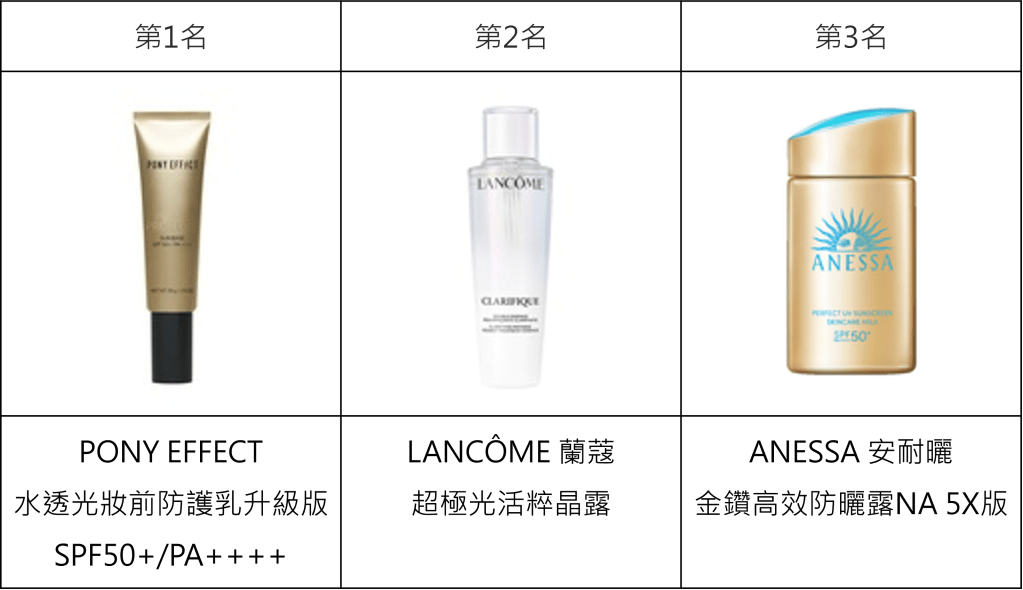 | 綜合大賞 | PONY EFFECT | 水透光妝前防護乳升級版SPF50+/PA++++ | 6.2 |