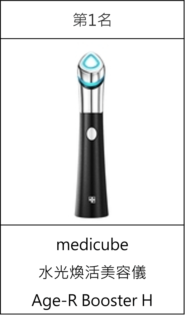 此外,延續後疫情時代的影響,消費者對於居家保養的注重度仍然持續上升,在社群上擁有十足話題熱度的medicube「水光煥活美容儀 Age-R Booster H」一舉奪下美容家電類別第一名的殊榮,主打居家也能快速享受專業的護膚體驗,更加印證了大家對於居家儀式感和保養細緻度的追求。