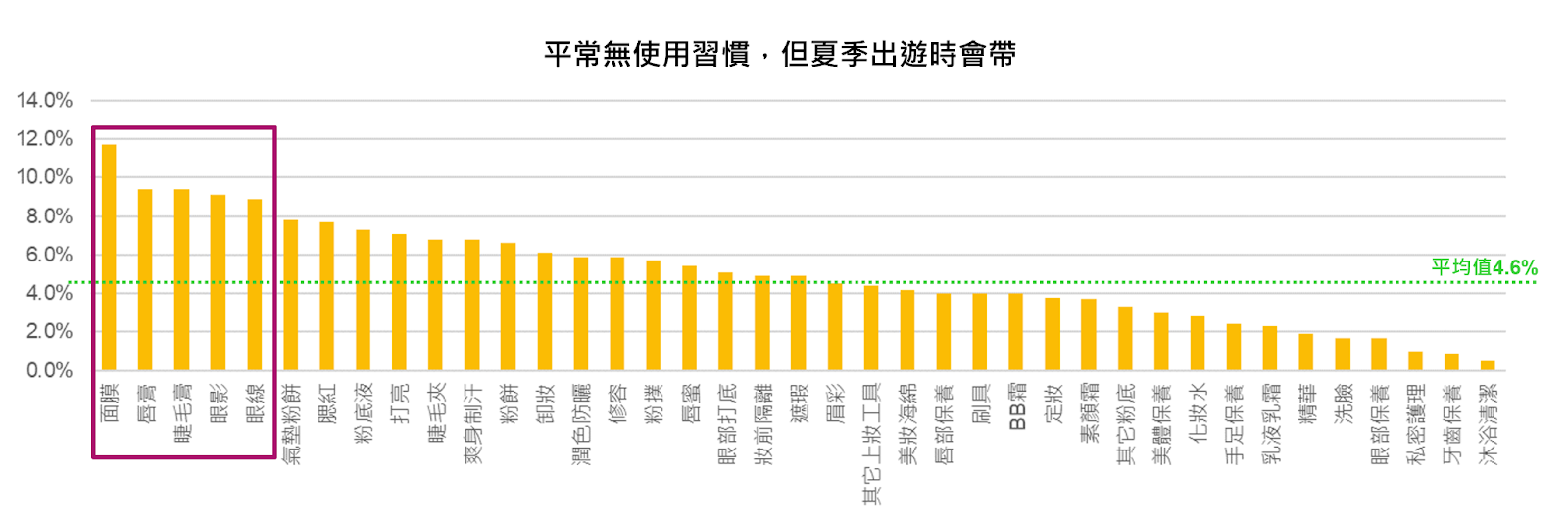 平常無使用習慣,但夏季出遊時會攜帶的美妝產品