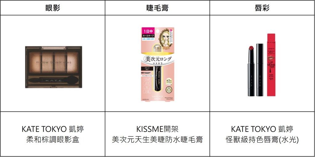 | 睫毛膏 | KISSME開架 | 美次元天生美睫防水睫毛膏 | 5.7 |