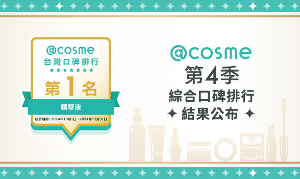 為進一步彰顯品牌經營的成果,以及提升口碑於市場上的應用性,@cosme於每一季公布「綜合性的口碑排行結果」,囊括更多不同的口碑切點x產品屬性,提供更有價值及具參考性的排行結果。